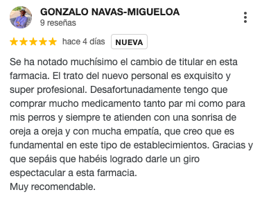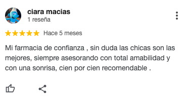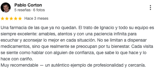 Somos una de las pocas farmacias de la zona que mantiene un horario tradicional, apostando por una atención farmacéutica cercana, sin prisas y centrada en el paciente.