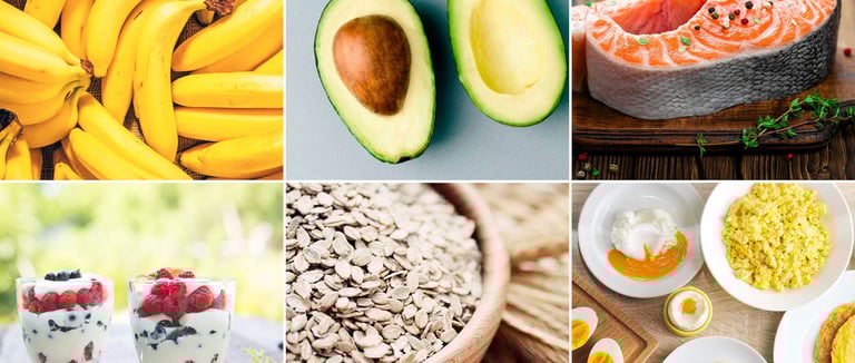 Plátanos: Ricos en magnesio y potasio, ayudan a relajar los músculos y el sistema nervioso.